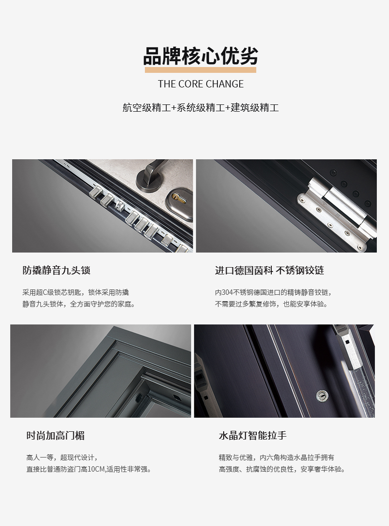 武义索朗德门业有限公司成立于2021年,我将以诚信、双赢为原则来经营企业,主要服务有门窗销售、五金产品零售、五金产品制造,拥有国内外-流的生产设备和检测设备,秉承“以人为本、品质至上、诚信经营"的治业理念,真诚为顾客提供安全、美观、放心的产品。索朗德人坚信,今天我们凭实力引领行业发展趋势,明天我们用思想去占领市场需求空间。我们认为,优秀的企业永远忠于品质、忠于管理、忠于社会责任,优秀的员工永远忠于企业、忠于岗位、忠于人格!